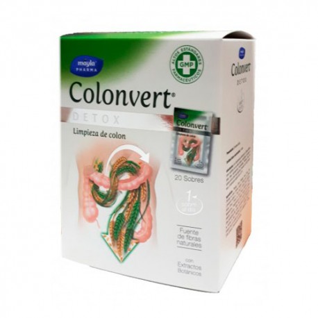 Mantener nuestro colon limpio es importante para evitar afecciones como estreñimiento, fatiga o diarrea. Por esta parte de nuestro cuerpo pasan gran cantidad de residuos y toxinas que pueden terminar por quedarse pegadas a las paredes del colon y ahí pueden almacenar. Para evitar que esto suceda, los sobres Colonvert Detox de Mayla Pharma contienen distintos tipos de fibra que contribuyen a un correcto tránsito intestinal. También están compuestos de Chlorella, un tipo de alga con una potente función desitonxicante que, además, potencia la flora bacteriana natural de nuestro organismo.\r\n