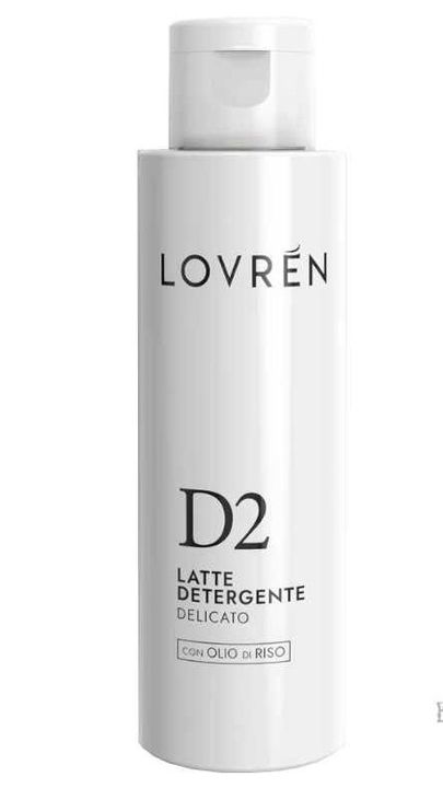 Lovren D2 Latte Detergente Delicato 100 ml con aceite de arroz formulada para desmaquillar y limpiar suavemente el rostro y los ojos. Gracias a su acción emoliente, calma incluso las pieles más sensibles.